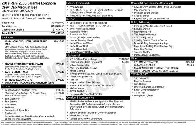 Recent Arrival! Delmonico Red Pearlcoat 2019 Ram 2500 Laramie Longhorn 4WD Cummins 6.7L I6 Turbodiesel 6-Speed Automatic