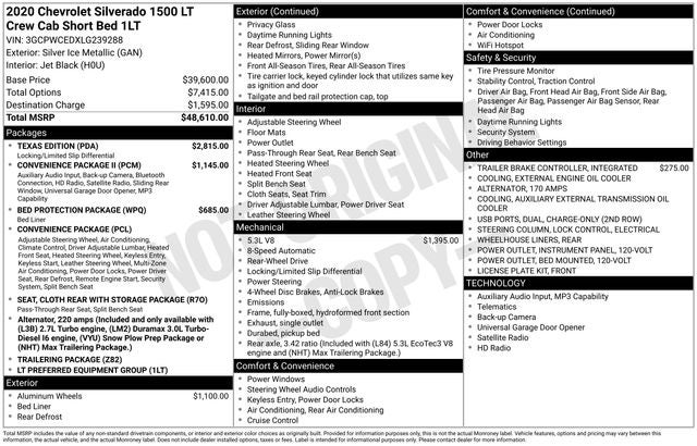• Convenience Package II (Universal Home Remote, Rear Sliding Power Window, 120-volt Power Outlets, Chevrolet Infotainment System with 8 Diagonal Color Touchscreen, SiriusXM with 360L, HD Radio, and HD Rear Vision Camera)