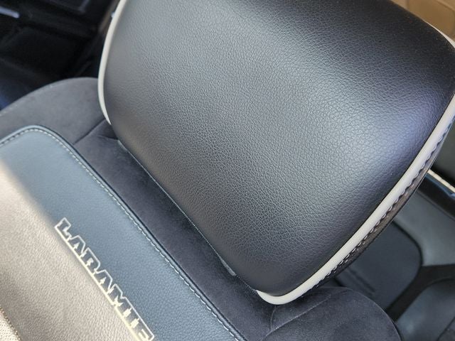 This Laramie model boasts a sleek Silver exterior, complemented by the premium 20 wheels and chrome exterior accents. Step inside the spacious cabin and experience the luxurious leather-trimmed bucket seats, heated and ventilated for maximum comfort.