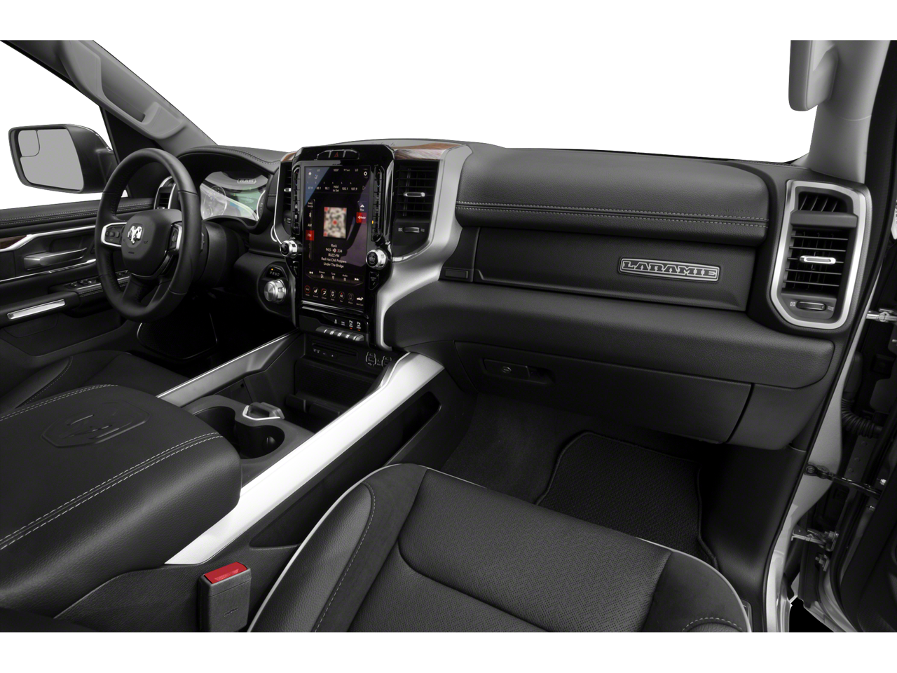 Laramie Level 2 Equipment Group (1-Yr SiriusXM Guardian Trial, 4G LTE Wi-Fi Hot Spot, 5-Year SiriusXM Traffic Service, 5-Year SiriusXM Travel Link Service, 8.4 Touchscreen Display, Apple CarPlay, Auto High Beam Headlamp Control, Blind Spot & Cross Path Detection, Disassociated Touchscreen Display, Foam Bottle Insert (Door Trim Panel), For Details, Visit DriveUconnect.com, GPS Antenna Input, GPS Navigation, harman/kardon 19 Speaker Premium Sound, HD Radio, Heated Second Row Seats, Integrated Center Stack Radio, Radio: Uconnect 4C Nav w/8.4 Display, Rain Sensitive Windshield Wipers, Rear 60/40 Folding Split Recline Seat, Rear Underseat Compartment Storage, Remote Tailgate Release, SiriusXM Satellite Radio, SiriusXM Traffic Plus, SiriusXM Travel Link, and Tailgate Ajar Warning Lamp), Night Edition (#1 Seat Foam Cushion, 3 Rear Seat Head Restraints, 4 Way Front Headrests, Black Exterior Truck Badging, Black Headlamp Bezels, Black Interior Accents, Body Color Door Handles, Body Color Exterior Mirrors, Body Color Front Bumper, Body Color Premium Power Mirrors, Body Color Rear Bumper w/Step Pads, Bucket Seats, Driver Seat Memory, Dual Exhaust w/Black Tips, Front Seat Back Map Pockets, Full Length Upgraded Floor Console, Grille Surround 3 Black Texture 2 Black, Heated Front Seats, Heated Steering Wheel, Leather Trimmed Bucket Seats, Power 4-Way Driver Lumbar Adjust, Power 4-Way Passenger Lumbar Adjust, Power 8-Way Driver & Passenger Seats, Sport Performance Hood, and Ventilated Front Seats), Quick Order Package 27H Laramie, 10 Speakers, 12 Touchscreen Display, 4-Wheel Disc Brakes, 48V Belt Starter Generator, ABS brakes, Adjustable pedals, Air Conditioning, Alloy wheels, AM/FM radio: SiriusXM, Anti-Spin Differential Rear Axle, Apple CarPlay/Android Auto, Audio memory, Auto-dimming door mirrors, Auto-dimming Rear-View mirror, Automatic temperature control, Black Tubular Side Steps (DISC), Brake assist, Bumpers: chrome, Compass, Delay-off headlights, Dome Dual LED Reading Lamp, Driver door bin, Driver vanity mirror, Dual front impact airbags, Dual front side impact airbags, Dual-Pane Panoramic Sunroof, Electronic Stability Control, Front anti-roll bar, Front Center Armrest w/Storage, Front dual zone A/C, Front fog lights, Front reading lights, Front wheel independent suspension, Fully automatic headlights, Garage door transmitter, Google Android Auto, Heated door mirrors, Heated front seats, Heated steering wheel, Illuminated entry, Leather steering wheel, Leather Trim 40/20/40 Bench Seat, LED Dome/Reading Lamp, Low tire pressure warning, Memory seat, Occupant sensing airbag, Outside temperature display, Overhead airbag, Overhead console, Panic alarm, ParkSense Front/Rear Park Assist w/Stop (DISC), ParkView Rear Back-Up Camera, Passenger door bin, Passenger vanity mirror, Pedal memory, Power door mirrors, Power driver seat, Power passenger seat, Power steering, Power windows, Radio data system, Radio: Uconnect 12 w/Navigation, Radio: Uconnect 4 w/8.4 Display, Rear anti-roll bar, Rear seat center armrest, Rear step bumper, Rear window defroster, Remote keyless entry, Security system, SiriusXM w/360L, Speed control, Split folding rear seat, Steering wheel mounted audio controls, Tachometer, Telescoping steering wheel, Tilt steering wheel, Traction control, Trailer Brake Control, Trip computer, Turn signal indicator mirrors, USB Host Flip, Variably intermittent wipers, Ventilated front seats, Voltmeter, Wheels: 18 x 8 Aluminum Base Painted, and Wheels: 22 x 9 Forged AluminuM.