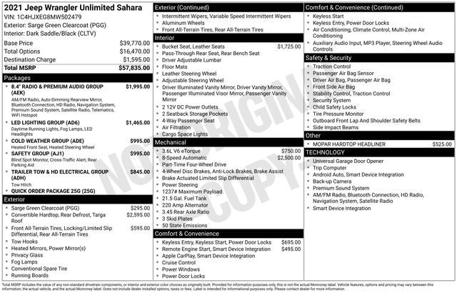 Whether you're an avid off-roader or simply seeking a versatile and capable SUV, the 2021 Jeep Wrangler Unlimited Sahara is the perfect choice. Experience the thrill of the open road and the freedom of the great outdoors in this exceptional vehicle. Visit our showroom today and let us help you discover the Wrangler that's right for you.