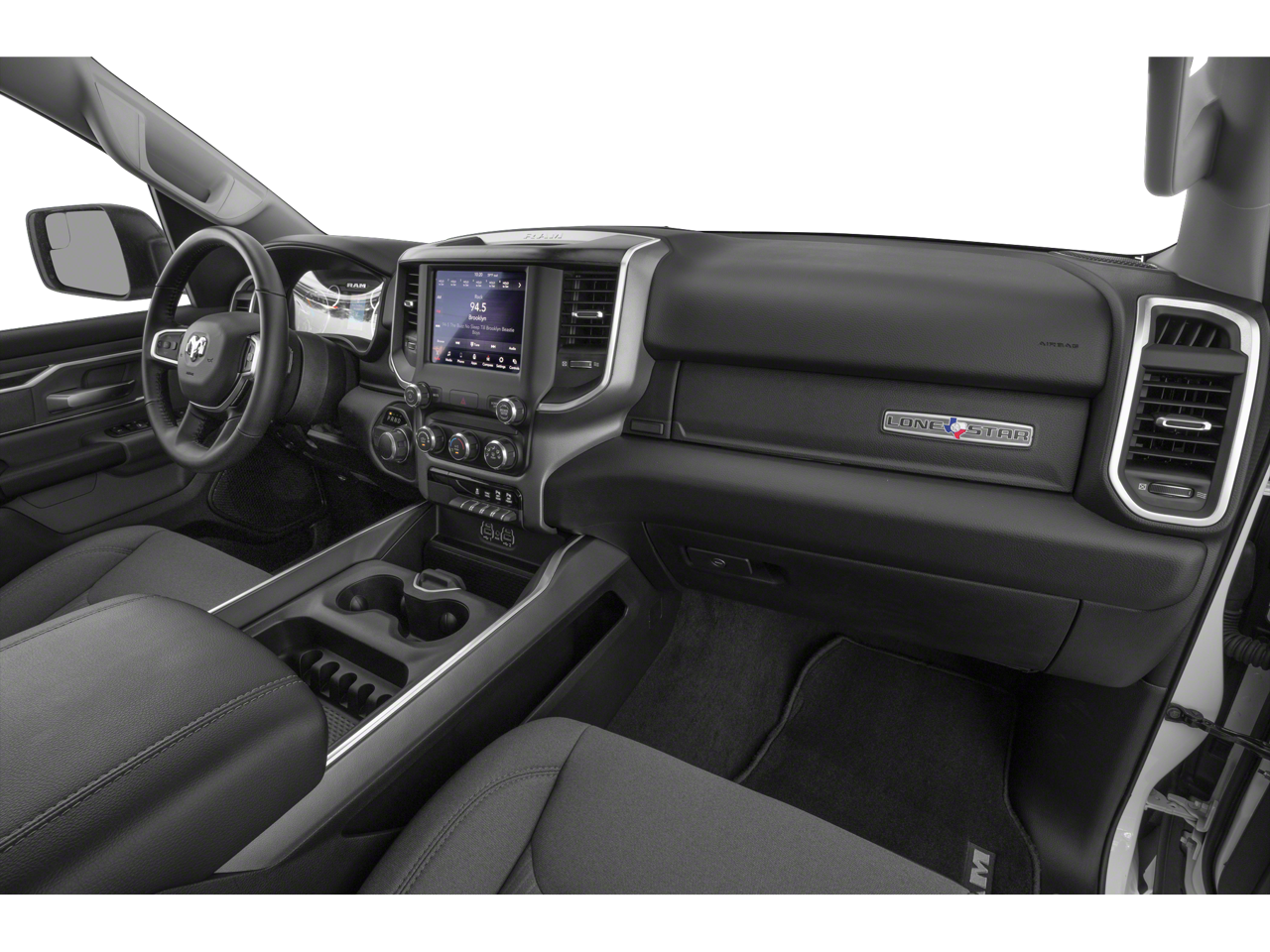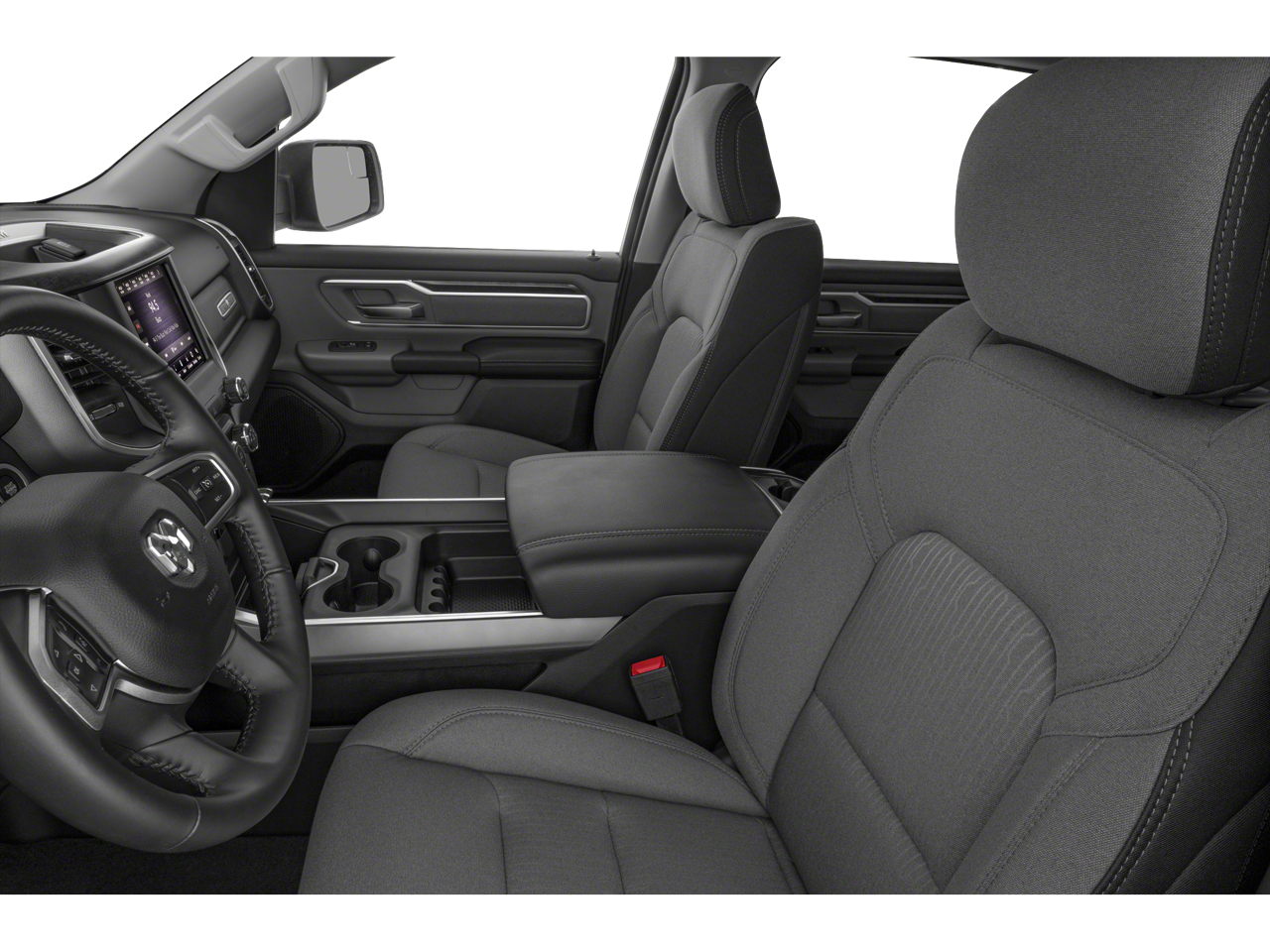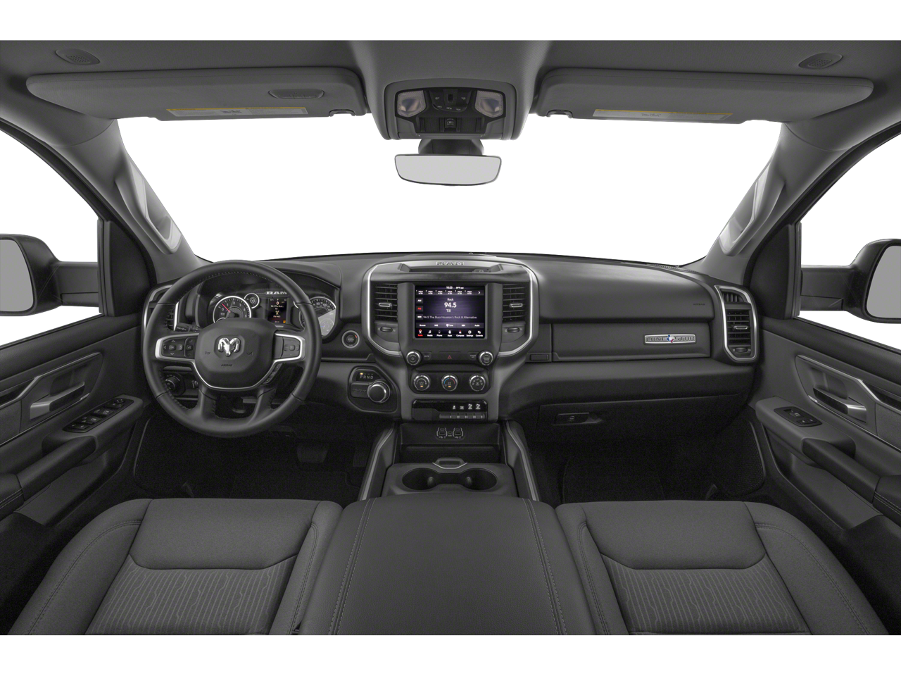 Bed Utility Group (MOPAR 4 Adjustable Cargo Tie-Down Hooks, MOPAR Deployable Bed Step, MOPAR Spray In Bedliner, and Pick-Up Box Lighting), Big Horn Level 2 Equipment Group (115V Auxiliary Power Outlet, 115V Auxiliary Rear Power Outlet, 2nd Row In Floor Storage Bins, 400W Inverter, Air Conditioning ATC w/Dual Zone Control, Auto-Dimming Exterior Driver Mirror, Auto-Dimming Rear-View Mirror, Black Premium Power Mirrors, Class IV Receiver Hitch, Cluster 7.0 TFT Color Display, Exterior Mirrors Courtesy Lamps, Exterior Mirrors w/Supplemental Signals, Foam Bottle Insert (Door Trim Panel), For More Info, Call 800-643-2112, Glove Box Lamp, Heated Front Seats, Heated Steering Wheel, Media Hub w/2 Charge Only USBs, ParkSense Front/Rear Park Assist w/Stop, Power 4-Way Driver Lumbar Adjust, Power 8-Way Driver Seat, Power Adjustable Pedals, Power-Folding Mirrors, Rear Dome w/On/Off Switch Lamp, Rear Power Sliding Window, Rear Window Defroster, Security Alarm, SiriusXM Radio Service, Sun Visors w/Illuminated Vanity Mirrors, and Universal Garage Door Opener), Built-To-Serve Edition (20 x 9 Aluminum Wheels, 3 Rear Seat Head Restraints, 4 Way Front Headrests, 9 Amplified Speakers w/Subwoofer, Black Door Handles, Black Exterior Truck Badging, Black Front Bumper, Black Headlamp Bezels, Black Onyx Interior Accent, Black Rear Bumper, Body Color Fender Flares, Bucket Seats, Built-To-Serve Edition I/P Badge, Center Console Parts Module, Dual Exhaust w/Black Tips, E-Locker Rear Axle, Front Extra HD Shock Absorbers, Front LED Fog Lamps, Full Length Floor Console, Grille Surround 1 Black Texture 1 Black, Hill Descent Control, LED Reflector Headlamps, LED Taillamps, Mopar Black Tubular Side Steps, MOPAR Front & Rear Rubber Floor Mats, MOPAR Lockable Console Storage, Premium Cloth/Vinyl Bucket Seats, RAM Grille Badge - Black, Rear 60/40 Folding Seat, Rear Extra HD Shock Absorbers, Tow Hooks, and US Flag Decal), Quick Order Package 23Z Big Horn (Big Horn Badge), Quick Order Package 27Z Big Horn, Technology Group (Heads-Up Display, LED CHMSL Lamp, and Rearview Autodim Digital Display Mirror), 1-Yr SiriusXM Guardian Trial, 12 Touchscreen Display, 4-Wheel Disc Brakes, 40/20/40 Split Bench Seat, 48V Belt Starter Generator, 4G LTE Wi-Fi Hot Spot, 5-Year SiriusXM Traffic Service, 5-Year SiriusXM Travel Link Service, 6 Speakers, ABS brakes, Air Conditioning, Alloy wheels, AM/FM radio, Apple CarPlay, Black Exterior Mirrors, Blind Spot & Cross Path Detection, Brake assist, Bumpers: chrome, Cloth Bench Seat, Compass, Delay-off headlights, Disassociated Touchscreen Display, Dome Dual LED Reading Lamp, Driver door bin, Dual front impact airbags, Dual front side impact airbags, Dual-Pane Panoramic Sunroof, Electronic Stability Control, For Details, Visit DriveUconnect.com, Front anti-roll bar, Front Center Armrest w/Storage, Front fog lights, Front License Plate Bracket, Front reading lights, Front Seat Back Map Pockets, Front wheel independent suspension, Fully automatic headlights, Google Android Auto, GPS Antenna Input, GPS Navigation, HD Radio, Heated door mirrors, Illuminated entry, Integrated Center Stack Radio, Integrated Voice Command w/Bluetooth®, Leather steering wheel, LED Footwell Lighting, Low tire pressure warning, LT Diesel Gray Accent Stitching (DISC), Multi-Function Tailgate, Occupant sensing airbag, Outside temperature display, Overhead airbag, Overhead console, Overhead LED Lamps, Panic alarm, ParkView Rear Back-Up Camera, Passenger door bin, Passenger vanity mirror, Power door mirrors, Power steering, Power windows, Premium Overhead Console, Radio data system, Radio: Uconnect 12 w/Navigation, Radio: Uconnect 3 w/5 Display, Rear anti-roll bar, Rear seat center armres