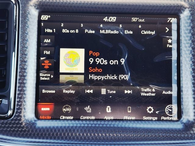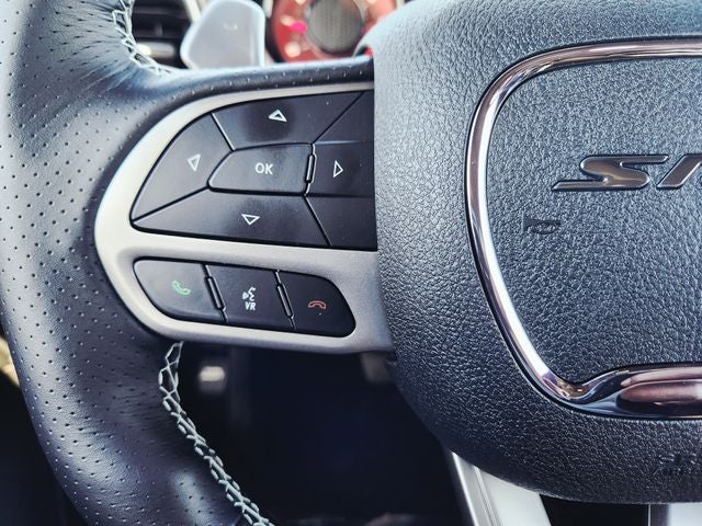 Elevating the interior, the Laguna Leather Package and Plus Package introduce premium touches like the Dark Engine Turn Interior Accents, Hellcat Logo Laguna Leather Seats, and the remarkable Harman/Kardon Audio Group with Surround Sound and a Trunk-Mounted Subwoofer. The Driver Convenience Group provides added peace of mind with features like Blind Spot & Cross Path Detection and the High-Intensity Discharge Headlamps.