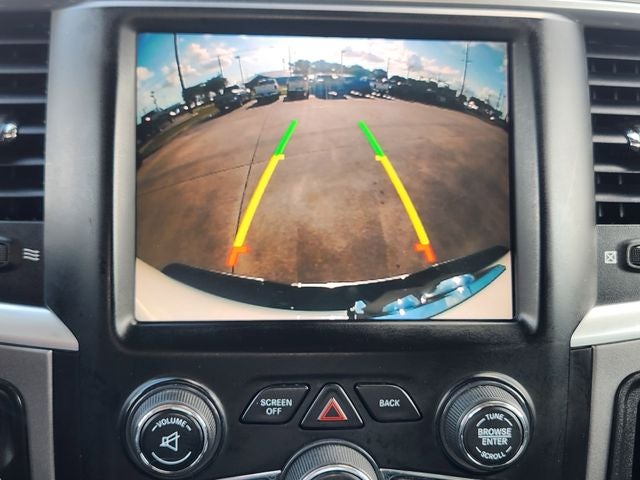 Protection Group (Tow Hooks), Radio: Uconnect 3 w/5 Display, 3.21 Rear Axle Ratio, 4-Wheel Disc Brakes, 40/20/40 Split Bench Seat, 6 Speakers, ABS brakes, Active Grille Shutters, Air Conditioning, Alloy wheels, AM/FM radio: SiriusXM, Black Exterior Mirrors, Brake assist, Bumpers: chrome, Center Hub, Class IV Receiver Hitch, Cloth 40/20/40 Bench Seat, Compass, Delay-off headlights, Driver door bin, Dual front impact airbags, Dual front side impact airbags, Electronic Shift, Electronic Stability Control, Engine Calibration Flash, V2, Exterior Mirrors w/Heating Element, Front anti-roll bar, Front Armrest w/3 Cupholders, Front Center Armrest w/Storage, Front License Plate Bracket, Front reading lights, Front wheel independent suspension, Fully automatic headlights, Heated door mirrors, Illuminated entry, Low tire pressure warning, Manufacturer's Statement of Origin, Occupant sensing airbag, Outside temperature display, Overhead airbag, Overhead console, Panic alarm, ParkSense Rear Park Assist System, ParkView Rear Back-Up Camera, Passenger door bin, Passenger vanity mirror, Power door mirrors, Power steering, Power windows, Radio data system, Rear anti-roll bar, Rear seat center armrest, Rear step bumper, Remote keyless entry, Remote USB Port - Charge Only, Rotary Shifter-Black, Speed control, Storage Tray, Tachometer, Tilt steering wheel, Tip Start, Traction control, Trailer Brake Control, Trip computer, Variably intermittent wipers, and Voltmeter.