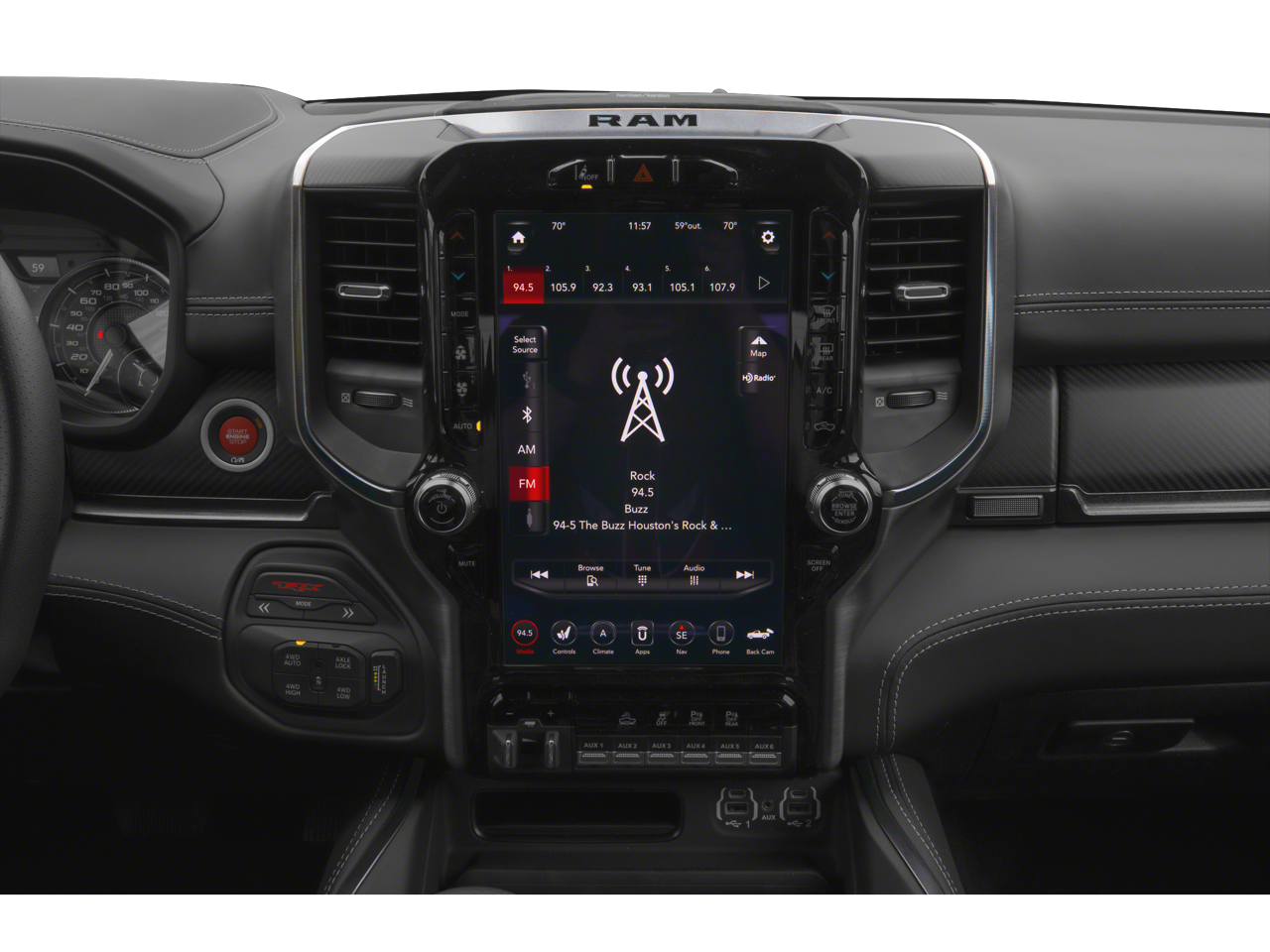 The interior of this Ram 1500 TRX is a masterful blend of luxury and functionality. Enjoy the convenience of features like the Dual-Pane Panoramic Sunroof, Wireless Charging Pad, and Remote Tailgate Release. The Heated Steering Wheel and Ventilated Front and Rear Seats provide unparalleled comfort, while the Leather/Suede Flat-Bottom Steering Wheel and TRX Red Interior Accents add a touch of refined style.