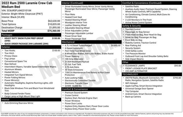 Whether you're tackling tough jobs or embarking on your next adventure, the 2022 Ram 2500 Laramie is the ultimate heavy-duty companion. Its uncompromising performance, exceptional comfort, and cutting-edge technology make it a standout in its class. Experience the difference for yourself and schedule a test drive today. This is a truck you won't want to miss.