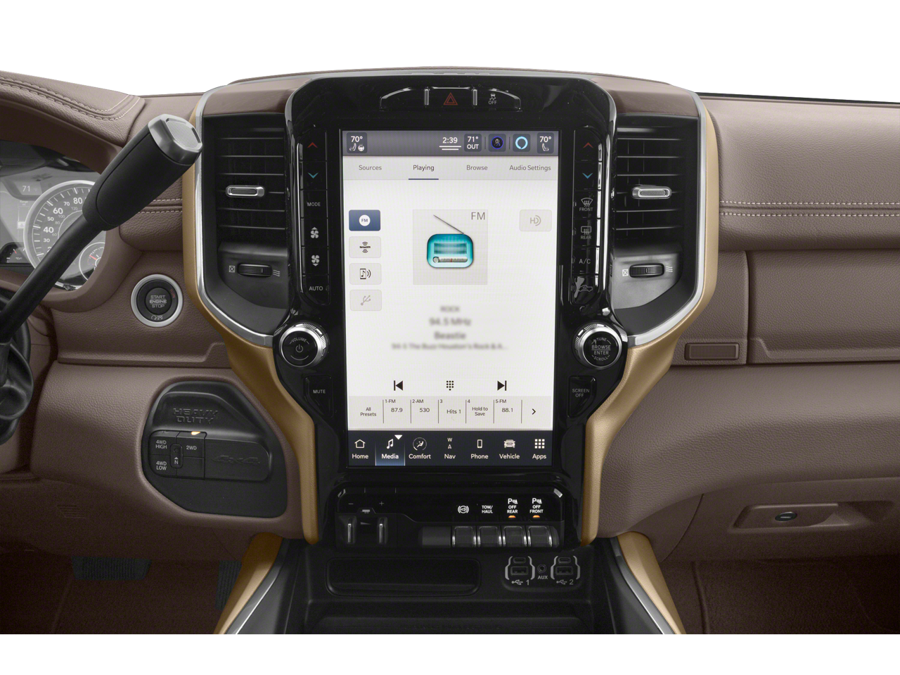 5th Wheel/Gooseneck Towing Prep Group (Pickup Box, Vendor Painted Cargo Box, and Vendor Painted Cargo Box Tracking), Limited Level 1 Equipment Group (17 Speaker harman kardon Premium Sound, Adaptive Cruise Control w/Stop, Adaptive Steering System, Center Stop Lamp w/Cargo View Camera, Digital Rearview Mirror, Full Speed Forward Collision Warning Plus, Lane Keep Assist, Surround View Camera System, and Trailer Reverse Guidance), Protection Group, Quick Order Package 2HM Limited, 10 Speakers, 12 Touchscreen Display, 220 Amp Alternator, 3.73 Axle Ratio, 4-Wheel Disc Brakes, 4G LTE Wi-Fi Hot Spot, ABS brakes, Active Noise Control System, Adjustable pedals, Air Conditioning, Air Suspension Decal, Alloy wheels, AM/FM radio: SiriusXM with 360L, Anti-Spin Differential Rear Axle, Apple CarPlay, Apple CarPlay/Android Auto, Audio memory, Auto High-beam Headlights, Auto Level Rear Air Suspension, Auto-dimming Rear-View mirror, Automatic temperature control, Bodyside moldings, Brake assist, Bumpers: chrome, Clearance Lamps, Compass, Connected Travel & Traffic Services, Connectivity - US/Canada, Delay-off headlights, Disassociated Touchscreen Display, Driver door bin, Driver vanity mirror, Dual Alternators Rated At 440 Amps, Dual front impact airbags, Dual front side impact airbags, Electronic Stability Control, Electronically Controlled Throttle, Exterior Mirrors Courtesy Lamps, Exterior Mirrors w/Heating Element, Exterior Mirrors w/Memory, Exterior Mirrors w/Supplemental Signals, Front anti-roll bar, Front Bucket Seats, Front Center Armrest w/Storage, Front dual zone A/C, Front fog lights, Front reading lights, Fully automatic headlights, Garage door transmitter, Genuine wood console insert, Genuine wood dashboard insert, Genuine wood door panel insert, Global Telematics Box Module (TBM), Google Android Auto, GPS Antenna Input, GPS Navigation, HD Radio, Heated door mirrors, Heated front seats, Heated rear seats, Heated steering wheel, Illuminated entry, Integrated Voice Command w/Bluetooth®, Leather steering wheel, Limited Leather Bucket Seats, Low tire pressure warning, Memory seat, Mirror Running Lights, Mirror-Mounted Aux Reverse Lamps, MOPAR Deployable Bed Step, Navigation System, Occupant sensing airbag, Off-Road Information Pages, Outside temperature display, Overhead airbag, Overhead console, Panic alarm, ParkView Rear Back-Up Camera, Passenger door bin, Passenger vanity mirror, Pedal memory, Power Adjustable Convex Aux Mirrors, Power door mirrors, Power driver seat, Power passenger seat, Power steering, Power Sunroof, Power windows, Power-Folding Mirrors, Radio data system, Radio: Uconnect 5 Nav w/12.0 Display, Rain sensing wipers, RamBox Delete, Rear anti-roll bar, Rear reading lights, Rear seat center armrest, Rear step bumper, Rear window defroster, Remote keyless entry, Security system, Selectable Tire Fill Alert, SiriusXM w/360L, Speed control, Split folding rear seat, Steering wheel mounted audio controls, Tachometer, Tilt steering wheel, Tip Start, Tow-Mode Camera (Wired), Traction control, Trailer Surround View Camera System (DISC), Trailer Tire Pressure Monitoring System, Trailer Tow Mirrors, Trip computer, Turn signal indicator mirrors, Variably intermittent wipers, Ventilated front seats, Voltmeter, and Wheels: 20 x 8.0 Satin Carbon w/Chrome Inserts.