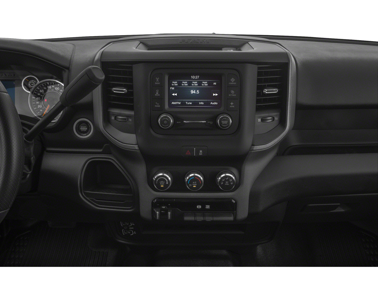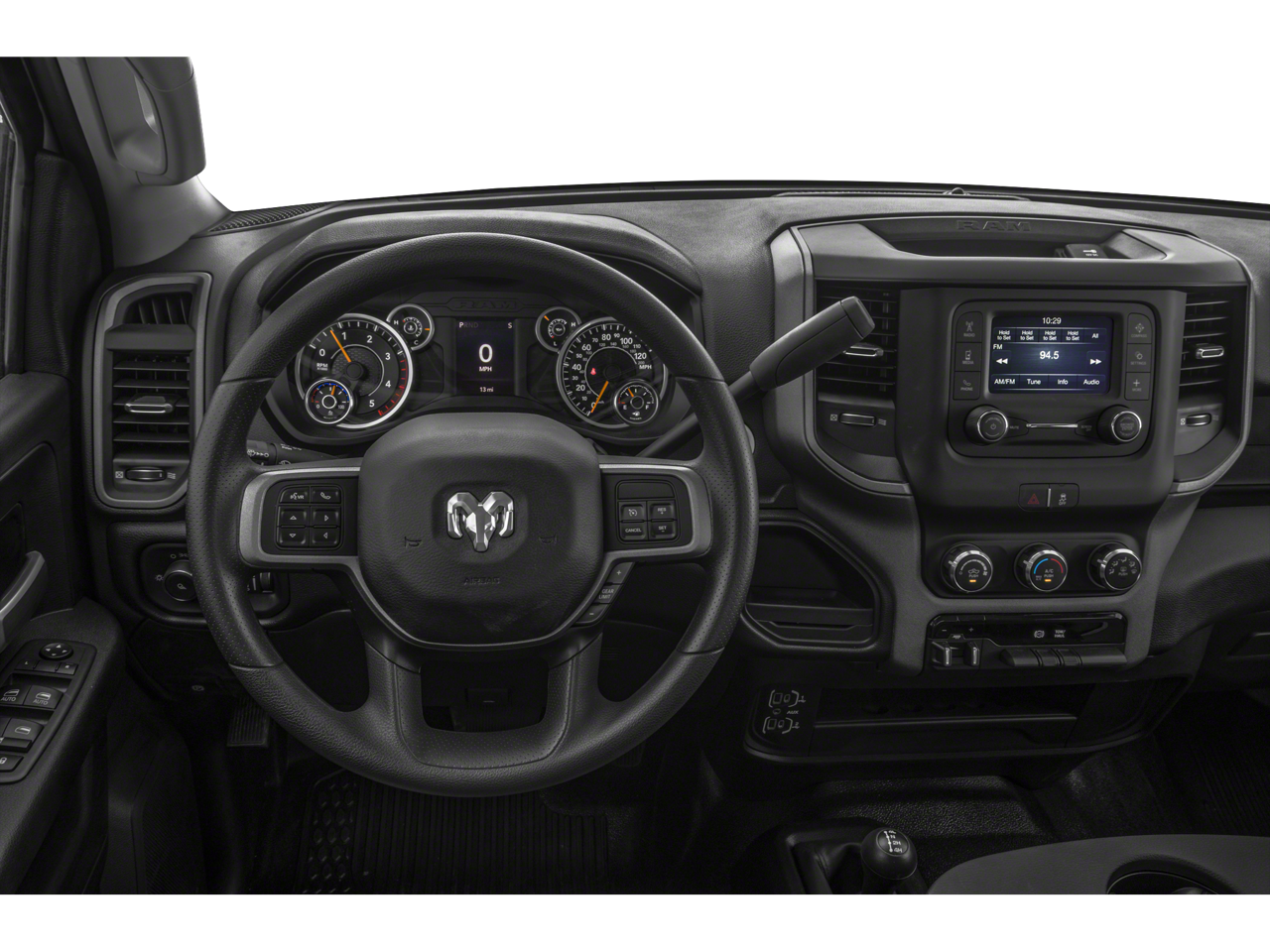 Chrome Appearance Group (Bright Front Bumper, Bright Rear Bumper, Center Hub, Chrome Grille Surround, Matte Black Mesh Grille w/Chrome, and Wheels: 18 x 8.0 Steel Chrome Clad), DOT Certified Roadside Safety Kit (2 Red Vinyl Flags, 3 Reflecting Triangles, DOT Fire Extinguisher, and Spare Fuses), Heavy Duty Snow Plow Prep Group (220 Amp Alternator), Quick Order Package 2HA Tradesman, Tradesman Level 2 Equipment Group (2 Way Rear Headrest Seat, 4 Way Front Headrests, 40/20/40 Split Bench Seat, Carpet Floor Covering, Cloth 40/20/40 Bench Seat, Front Armrest w/Cupholders, Manual Adjust 4-Way Driver Seat, Manual Adjust 4-Way Front Passenger Seat, Rear Folding Seat, Rear Power Sliding Window, Rear Window Defroster, SiriusXM Satellite Radio, and Storage Tray), 17 x 7.5 Steel Styled Wheels, 3.73 Axle Ratio, 4-Wheel Disc Brakes, 4G LTE Wi-Fi Hot Spot, 6 Speakers, 8.4 Touchscreen Display, ABS brakes, Active Noise Control System, Air Conditioning, Air Suspension Decal, All R1 Low Radios, All Radio Equipped Vehicles, AM/FM radio, Apple CarPlay, Auto Level Rear Air Suspension, Black Exterior Mirrors, Bluetooth® Handsfree Phone & Audio, Brake assist, Clearance Lamps, Cluster 3.5 TFT Color Display, Cluster 7.0 TFT Color Display, Compass, Connectivity - US/Canada, Delay-off headlights, Driver door bin, Dual front impact airbags, Dual front side impact airbags, Electric Shift-On-The-Fly Transfer Case, Electronic Stability Control, Electronically Controlled Throttle, Emergency communication system: SiriusXM Guardian, Exterior Mirrors Courtesy Lamps, Exterior Mirrors w/Heating Element, Exterior Mirrors w/Supplemental Signals, For Details, Visit DriveUconnect.com, Front anti-roll bar, Front Center Armrest w/Storage, Front License Plate Bracket, Front reading lights, Fully automatic headlights, Global Telematics Box Module (TBM), Google Android Auto, GPS Antenna Input, Heated door mirrors, Heavy Duty Vinyl 40/20/40 Split Bench Seat, Illuminated entry, Integrated Center Stack Radio, Integrated Voice Command w/Bluetooth®, Low tire pressure warning, Manufacturer's Statement of Origin, Mirror Running Lights, Occupant sensing airbag, Outside temperature display, Overhead airbag, Overhead console, ParkView Rear Back-Up Camera, Passenger door bin, Passenger vanity mirror, Power Adjust & Heated Black Tow Mirrors, Power door mirrors, Power steering, Power windows, Radio data system, Radio: Uconnect 3 w/5 Display, Radio: Uconnect 5 W w/8.4 Display, Rear anti-roll bar, Rear step bumper, Rear Wheelhouse Liners, Selectable Tire Fill Alert, SiriusXM Radio Service, Speed control, Tachometer, Tilt steering wheel, Tip Start, Tow Hooks, Traction control, Trailer Brake Control, Trailer Light Check, Trailer Tow Mirrors, Variably intermittent wipers, Vendor Painted Cargo Box, Vendor Painted Cargo Box Tracking, and VoltmeteR.