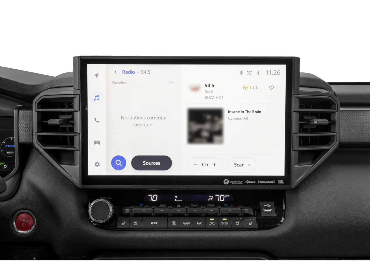 Towing Technology Package, TRD Pro Package (400W/120V AC Rear Seat & Bed Power Supply, Black Dual Exhaust Tips w/Debossed TRD Pro Logo, Front & Rear Mud Guards, Heated Color-Keyed Outside Mirrors, LED Lightbar w/Fog & Marker Lights, Multi-Terrain Back Monitor, Panoramic View Back Monitor, Power Panoramic Roof, Qi-Compatible Wireless Smartphone Charger, Smoked-Finish Premium LED Headlights & DRL, and TRD Pro Heated Leather-Trimmed Steering Wheel), 3.4L V6, 12 Speakers, 3.31 Axle Ratio, 4-Wheel Disc Brakes, ABS brakes, Air Conditioning, Alloy wheels, AM/FM radio: SiriusXM, Apple CarPlay/Android Auto, Auto High-beam Headlights, Auto-dimming door mirrors, Auto-dimming Rear-View mirror, Automatic temperature control, Brake assist, Bumpers: body-color, Delay-off headlights, Driver door bin, Driver vanity mirror, Dual front impact airbags, Dual front side impact airbags, Electronic Stability Control, Emergency communication system: Safety Connect (10-year trial), Front anti-roll bar, Front Bucket Seats, Front Center Armrest, Front dual zone A/C, Front fog lights, Front reading lights, Front wheel independent suspension, Fully automatic headlights, Garage door transmitter: HomeLink, Heated & Ventilated Front Bucket Seats, Heated door mirrors, Heated front seats, Heated steering wheel, Illuminated entry, Knee airbag, Leather Shift Knob, Low tire pressure warning, Memory seat, Navigation System, Occupant sensing airbag, Outside temperature display, Overhead airbag, Overhead console, Panic alarm, Passenger door bin, Passenger vanity mirror, Power door mirrors, Power driver seat, Power moonroof, Power passenger seat, Power steering, Power windows, Radio data system, Radio: Premium Audio w/JBL, Rear reading lights, Rear seat center armrest, Rear step bumper, Rear window defroster, Remote keyless entry, Security system, SofTex Seat Trim, Speed control, Speed-sensing steering, Split folding rear seat, Sport steering wheel, Steering wheel mounted audio controls, Tachometer, Telescoping steering wheel, Tilt steering wheel, Traction control, TRD Cast Aluminum Running Board (TMS), Trip computer, Turn signal indicator mirrors, Variably intermittent wipers, Ventilated front seats, Voltmeter, and Wheels: 18 x 8 Black BBS Forged Aluminum.