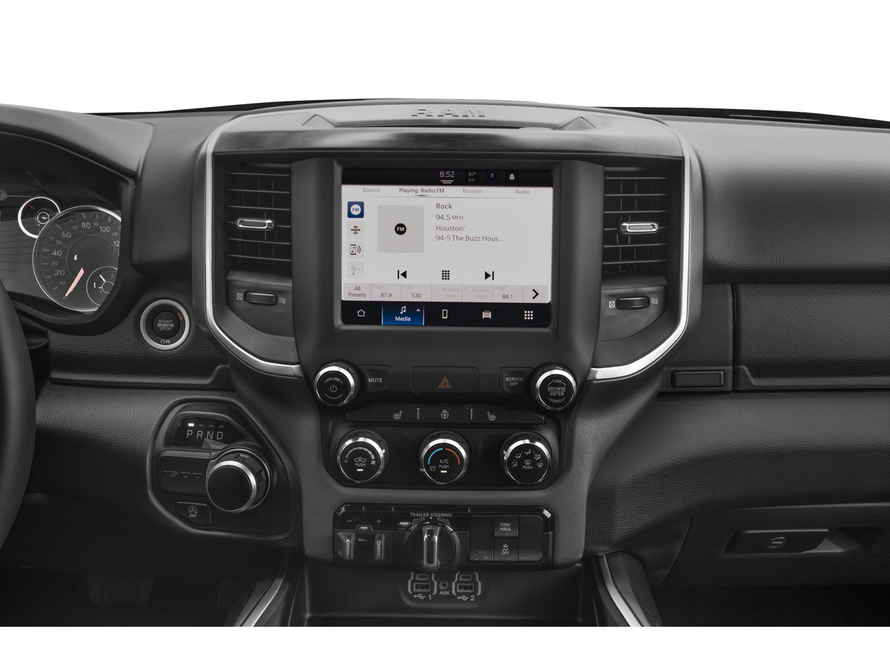 Laramie Level 1 Equipment Group (2nd Row In Floor Storage Bins, 4G LTE Wi-Fi Hot Spot, Apple CarPlay, Auto High Beam Headlamp Control, Blind Spot & Cross Path Detection, Connected Travel & Traffic Services, Connectivity - US/Canada, Foam Bottle Insert (Door Trim Panel), For Details, Visit DriveUconnect.com, For More Info, Call 800-643-2112, Front Door Accent Lighting, Front LED Fog Lamps, Global Telematics Box Module (TBM), Google Android Auto, GPS Navigation, HD Radio, Heated Second Row Seats, Integrated Voice Command w/Bluetooth®, LED Reflector Headlamps, Power Adjustable Pedals w/Memory, Radio: Uconnect 5 Nav w/12.0 Display, Rain Sensitive Windshield Wipers, Rear Door Accent Lighting, Rear Power Sliding Window, Rear Window Defroster, Remote Tailgate Release, SiriusXM Radio Service, SiriusXM w/360L, and USB Host Flip), Laramie Southwest Edition (Auto-Dimming Exterior Driver Mirror, Body Color Exterior Mirrors, Body Color Front Bumper, Body Color Premium Power Mirrors, Body Color Rear Bumper w/Step Pads, Chrome Tow Hooks, Convex Wide-Angle Exterior Mirror Insert, Dome Dual LED Reading Lamp, Dual-Pane Panoramic Sunroof, Exterior Mirrors Courtesy Lamps, Exterior Mirrors w/Heating Element, Exterior Mirrors w/Memory, Exterior Mirrors w/Supplemental Signals, Grille Surround 3 Body Color Tex 4 Chrome, LED Dome/Reading Lamp, MOPAR Lockable Console Storage, Power Running Boards, Power-Folding Mirrors, RAM Grille Badge - Chrome, Trailer Brake Control, and Wheels: 20 x 9 Premium Painted w/Inserts), Quick Order Package 27H Laramie, 10 Speakers, 3 Rear Seat Head Restraints, 3.21 Rear Axle Ratio, 33 Gallon Fuel Tank, 4 Way Front Headrests, 4-Wheel Disc Brakes, 48V Belt Starter Generator, ABS brakes, Air Conditioning, Alloy wheels, AM/FM radio: SiriusXM with 360L, Apple CarPlay/Android Auto, Audio memory, Auto-dimming door mirrors, Auto-dimming Rear-View mirror, Automatic temperature control, Brake assist, Bumpers: chrome, Chrome Exterior Mirrors, Class IV Receiver Hitch, Compass, Delay-off headlights, Driver door bin, Driver Seat Memory, Driver vanity mirror, Dual front impact airbags, Dual front side impact airbags, Electronic Stability Control, Exterior Parking Camera Rear, Front anti-roll bar, Front Center Armrest w/Storage, Front dual zone A/C, Front fog lights, Front reading lights, Front Seat Back Map Pockets, Front wheel independent suspension, Fully automatic headlights, Garage door transmitter, Heated door mirrors, Heated Front Seats, Heated front seats, Heated Steering Wheel, Heated steering wheel, Illuminated entry, Leather steering wheel, Leather Trim 40/20/40 Bench Seat, Low tire pressure warning, Memory seat, Navigation System, Occupant sensing airbag, Outside temperature display, Overhead airbag, Overhead console, Panic alarm, ParkSense Front/Rear Park Assist w/Stop (DISC), Passenger door bin, Passenger vanity mirror, Power 2-Way Driver Lumbar Adjust, Power 2-Way Passenger Lumbar Adjust, Power 8-Way Driver & Passenger Seats, Power door mirrors, Power driver seat, Power passenger seat, Power steering, Power windows, Radio data system, Radio: Uconnect 5 Nav w/8.4 Display, Rear 60/40 Folding Seat, Rear anti-roll bar, Rear seat center armrest, Rear step bumper, Remote keyless entry, Security system, Speed control, Split folding rear seat, Steering wheel mounted audio controls, Tachometer, Telescoping steering wheel, Tilt steering wheel, Traction control, Trip computer, Turn signal indicator mirrors, Variably intermittent wipers, Ventilated Front Seats, Ventilated front seats, Voltmeter, and Wheels: 18 x 8 Aluminum Base PainteD.