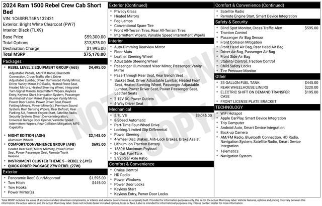 Discover the ultimate combination of power, capability, and comfort in the 2024 Ram 1500 Rebel. Experience the difference for yourself and schedule a test drive today. Our knowledgeable team is here to answer any questions and ensure you find the perfect vehicle to suit your needs. Don't miss your chance to make this exceptional Rebel your own.