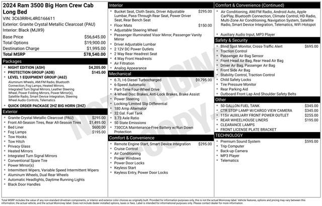 We invite you to visit our showroom and take this remarkable truck for a test drive. Our knowledgeable sales team is ready to answer any questions you may have and help you discover why this 2024 Ram 3500 Big Horn is the perfect choice for your needs. Don't miss your opportunity to own this impressive, one-of-a-kind vehicle. Contact us today to schedule your appointment.