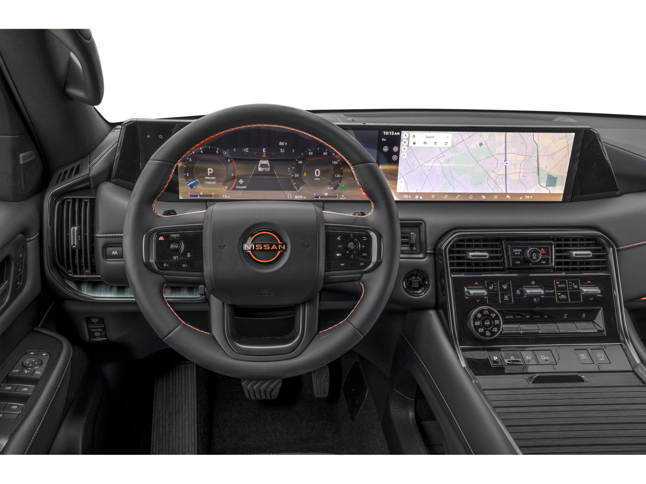 PRO-4X Premium Package (Biometric Cooling, Hands-Free Power Liftgate, Heated & Ventilated Driver & Passenger Seats, Heated 2nd Row Seats, In-Car Camera, Intelligent Dash Cam, and Panoramic Moonroof), 4WD, 12 Speakers, 3rd row seats: split-bench, 4-Wheel Disc Brakes, ABS brakes, Adaptive suspension, Air Conditioning, Alloy wheels, AM/FM radio: SiriusXM, Anti-whiplash front head restraints, Auto High-beam Headlights, Auto tilt-away steering wheel, Auto-dimming door mirrors, Auto-dimming Rear-View mirror, Auto-leveling suspension, Automatic temperature control, Brake assist, Bumpers: body-color, Delay-off headlights, Driver door bin, Driver vanity mirror, Dual front impact airbags, Dual front side impact airbags, Electronic Stability Control, Emergency communication system: NissanConnect Services, Four wheel independent suspension, Front anti-roll bar, Front Bucket Seats, Front Center Armrest, Front dual zone A/C, Front fog lights, Front reading lights, Front Tow Hooks, Fully automatic headlights, Garage door transmitter: myQ Connected Garage, Genuine wood dashboard insert, Heated door mirrors, Heated Front Bucket Seats, Heated front seats, Heated steering wheel, HVAC memory, Illuminated entry, Illuminated Kick Plates, Knee airbag, Leather steering wheel, Low tire pressure warning, Memory seat, Navigation System, Occupant sensing airbag, Outside temperature display, Overhead airbag, Overhead console, Panic alarm, Passenger door bin, Passenger vanity mirror, Power door mirrors, Power driver seat, Power Liftgate, Power passenger seat, Power steering, Power windows, Premium Paint, PRO-4X Carpeted Floor Mats, PRO-4X Mud Guards, PRO-4X Unique Quilted Leather Seat Trim, Radio: NissanConnect w/SiriusXM 360L, Rain sensing wipers, Rear air conditioning, Rear anti-roll bar, Rear Bumper Protector, Rear reading lights, Rear seat center armrest, Rear window defroster, Rear window wiper, Reclining 3rd row seat, Remote keyless entry, Roof Rail Cross Bars, Security system, Speed control, Speed-sensing steering, Speed-Sensitive Wipers, Split folding rear seat, Spoiler, Steering wheel memory, Steering wheel mounted audio controls, Tachometer, Telescoping steering wheel, Tilt steering wheel, Traction control, Trip computer, Turn signal indicator mirrors, Variably intermittent wipers, Voltmeter, and Wheels: 20 Painted PRO-4X Alloy.