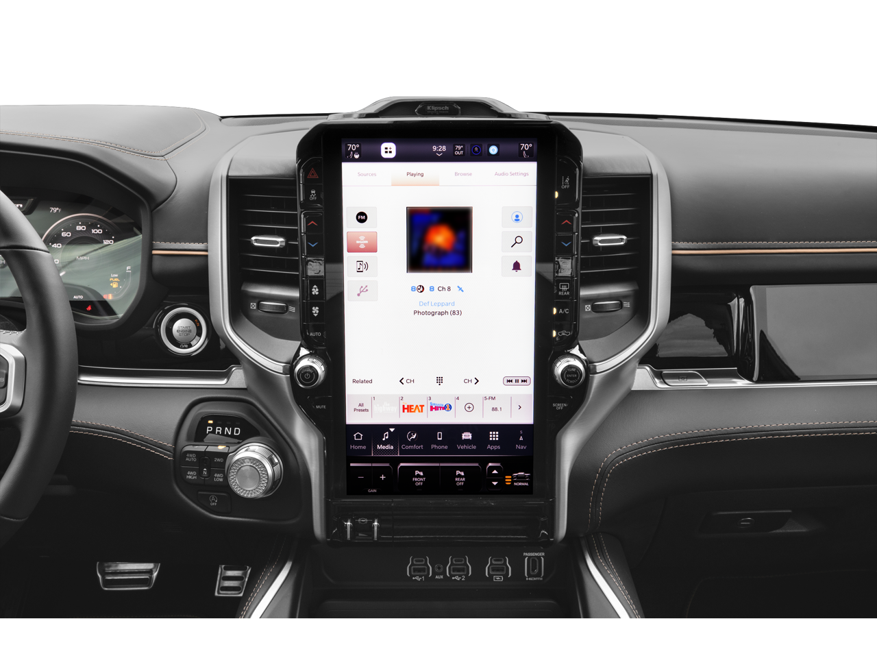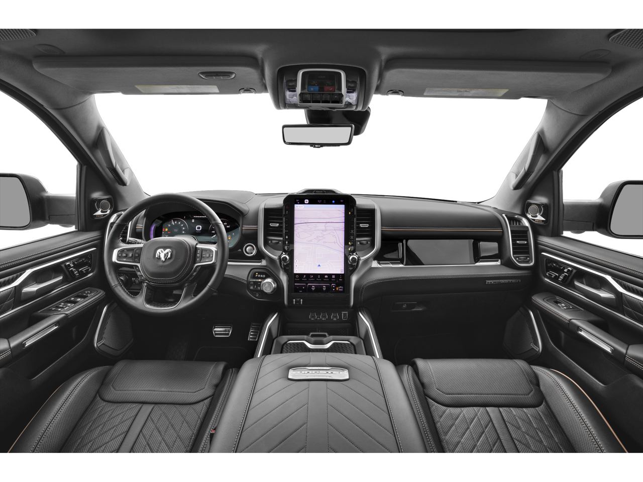 Bed Utility Group (MOPAR 4 Adjustable Cargo Tie-Down Hooks and Truck Bed Cargo Divider), Quick Order Package 22V Tungsten, Trailer Tow Group (Trailer Brake Control, Trailer Light Check, Trailer Reverse Steering Control, and Trailer Tire Pressure Monitoring System), 12-Way/1-Way Trailer Connector, 3.92 Rear Axle Ratio, 4-Wheel Disc Brakes, ABS brakes, Adjustable pedals, Air Conditioning, Alloy wheels, AM/FM radio: SiriusXM with 360L, Apple CarPlay/Android Auto, Audio memory, Auto High-beam Headlights, Auto Power-Folding Mirrors, Auto-dimming door mirrors, Auto-Dimming Exterior Driver Mirror, Auto-dimming Rear-View mirror, Auto-leveling suspension, Automatic temperature control, Bodyside moldings, Brake assist, Bumpers: body-color, Chrome Exterior Mirrors, Compass, Delay-off headlights, Driver door bin, Driver vanity mirror, Dual front impact airbags, Dual front side impact airbags, Electronic Stability Control, Exterior Mirrors Courtesy Lamps, Exterior Mirrors w/Heating Element, Exterior Mirrors w/Memory, Exterior Mirrors w/Supplemental Signals, Front anti-roll bar, Front Bucket Seats, Front Center Armrest w/Storage, Front dual zone A/C, Front fog lights, Front License Plate Bracket, Front reading lights, Front wheel independent suspension, Fully automatic headlights, Garage door transmitter, Heads-Up Display, Heated door mirrors, Heated front seats, Heated rear seats, Heated steering wheel, Illuminated entry, Leather steering wheel, Low tire pressure warning, Manufacturer's Statement of Origin, Memory seat, Navigation System, Occupant sensing airbag, Outside temperature display, Overhead airbag, Overhead console, Panic alarm, Passenger door bin, Passenger vanity mirror, Pedal memory, Power adjustable front head restraints, Power door mirrors, Power driver seat, Power moonroof, Power passenger seat, Power steering, Power windows, Premium Leather Bucket Seats, Radio data system, Radio: Uconnect 5 Nav w/14.4 Display, Rain sensing wipers, Rear anti-roll bar, Rear reading lights, Rear seat center armrest, Rear step bumper, Rear window defroster, Remote keyless entry, Security system, Speed control, Split folding rear seat, Steering wheel mounted audio controls, Tachometer, Telescoping steering wheel, Tilt steering wheel, Traction control, Trip computer, Turn signal indicator mirrors, Variably intermittent wipers, Ventilated front seats, Ventilated rear seats, Voltmeter, and Wheels: 22 x 9 Polish/Painted w/Inserts.